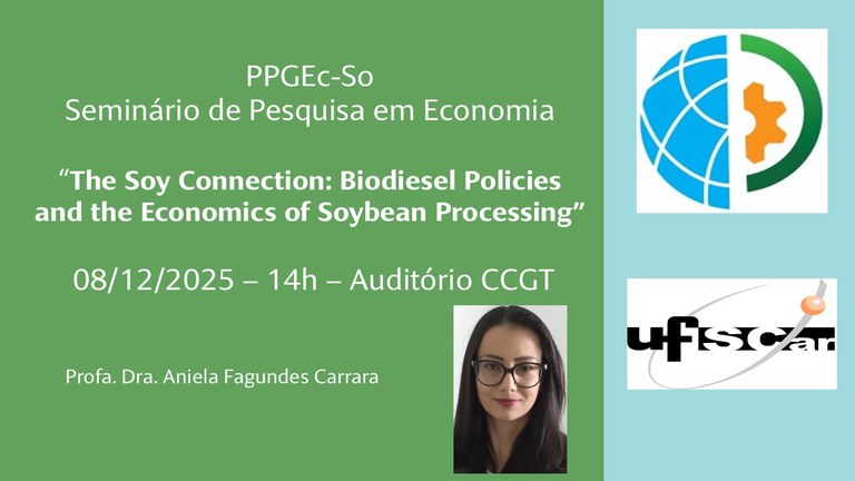 O Tema do Seminário será: The Soy Connection: Biodiesel Policies and the Economics of Soybean Processing.
